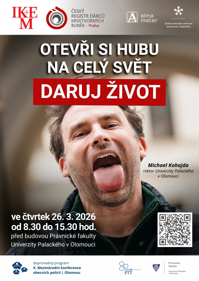 Otevři si hubu na celý svět a daruj život. Ve čtvrtek 26. března 20206 před budovou Právnické fakulty Univerzity Palackého v Olomouci bud opět probíhat náborová kampaň Českého registru dárců krvetvorných buněk při IKEM na podporu dárcovství krvetvorných buněk.